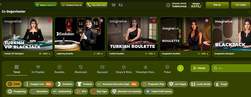 Kullanıcılar Grandpashabet firmasında hesaplarını oluşturduktan sonra çeşitli oyun seçeneklerinden faydalanarak kazanç elde edebilirler. Bu seçenekler arasında canlı krupiyeli oyunlar özellikle ilgi görmektedir. Canlı casino oyunları hem eğlenceli yapıları hem de sundukları yüksek kazanç potansiyeli ile dikkat çekmektedir. Müşteriler arasında en popüler olanlar ise rulet poker blackjack ve bu oyunların farklı versiyonlarıdır. Sitedeki değerli bonus fırsatlarından yararlanarak bu oyunlarda kazanç sağlamak mümkündür. Geniş oyun yelpazesi ve güvenli bir bahis ortamı Grandpashabet’te kullanıcıları beklemektedir.
